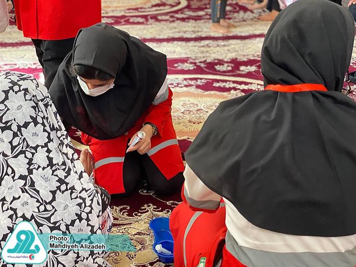 خدمت رسانی تیم های امدادونجات جمعیت هلال احمر تربت حیدریه به زائرین پیاده حضرت علی بن موسی الرضا (ع) درمحل اسکان کاروانها